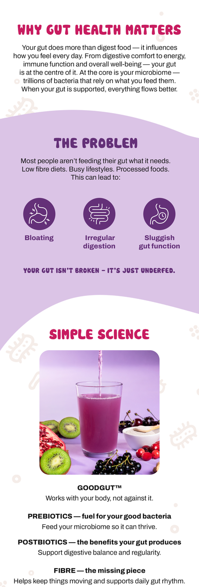 No added sugar. No polyols. Just real ingredients working together to nourish your gut's natural balance, day after day.